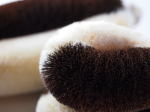 ■ ナチュラルブラシS モノは、繊維の違いで使い分けができます。白い繊維は、水に浸すと柔らかいため、